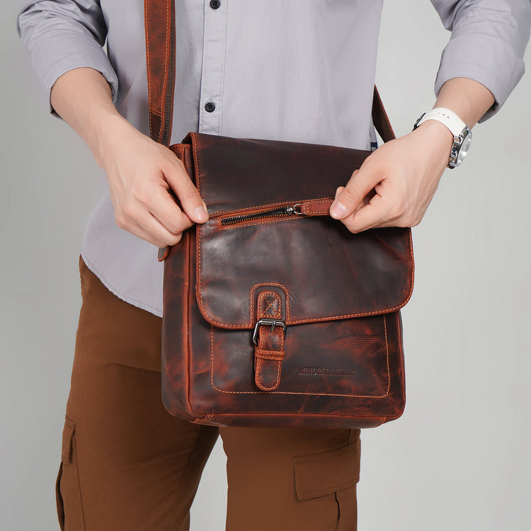 Experience timeless craftsmanship with the Raleigh Messenger by Minori Leather — a larger, more structured evolution of our Dallas design. Handcrafted from luxurious Chestnut oil pull-up full-grain leather, this messenger blends vintage charm with modern utility. Each piece carries natural high-low tones, hand-waxed for a rich patina that deepens beautifully over time.